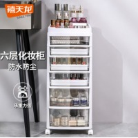 禧天龙 多功能化妆品收纳柜带滑轮 六层抽屉式收纳盒子 口红面膜护肤品浴室置物架 免安装白色