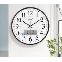 康巴丝(COMPAS) 挂钟16英寸万年历温湿度计静音创意客厅双日历挂表钟表 2983双液
