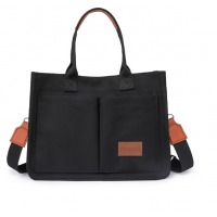 帆布包单肩斜挎包女手提公文包商务通勤OL风A4文件包学生书包 黑色