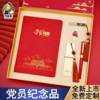 cx七一党员学习笔记本纪念品定制红绒礼盒 红船(笔记本+微章+长书签+16G优盘+签字)5