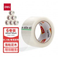 得力(deli)高品质透明封箱胶带 60mm*100y*45μm(91.4m/卷) 6卷装