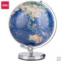 得力(deli)直径25cmLED灯立体浮雕地球仪 教学摆件 附带放大镜 高清中英文对照