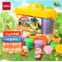 得力24色 黏土彩泥手工DIY橡皮泥儿童玩具手提易收纳盒装 YC127-24A