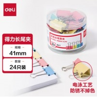 得力(deli)8552 彩色长尾夹 41mm 24只/筒
