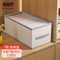 妙馨思衣柜收纳分隔叠衣服神器衣物打底裤内衣袜子收纳分格袋筐箱收纳盒 灰色7格