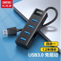 优越者Y-3098CBK USB分线器3.0高速扩展一拖四多接口电脑HUB 1.2米 3.