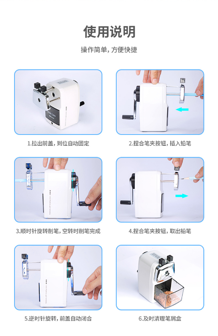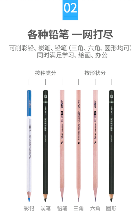 商品名称:得力(deli) 0620简约金属手摇削笔机 商品编号:101114 品牌:得力 上架时间:2021-06-21 商品毛重:0克