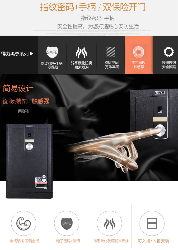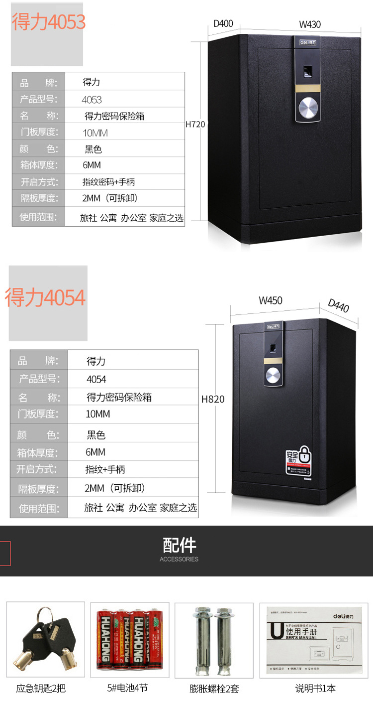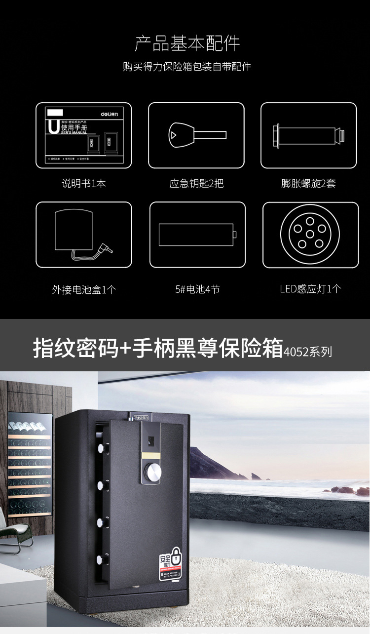 商品名称:得力(deli)APP远程监控指纹解锁智能保险箱防盗钥匙智能防盗 黑色4054 商品编号:101203 品牌:得力 上架时间:2021-06-23 商品毛重:0克