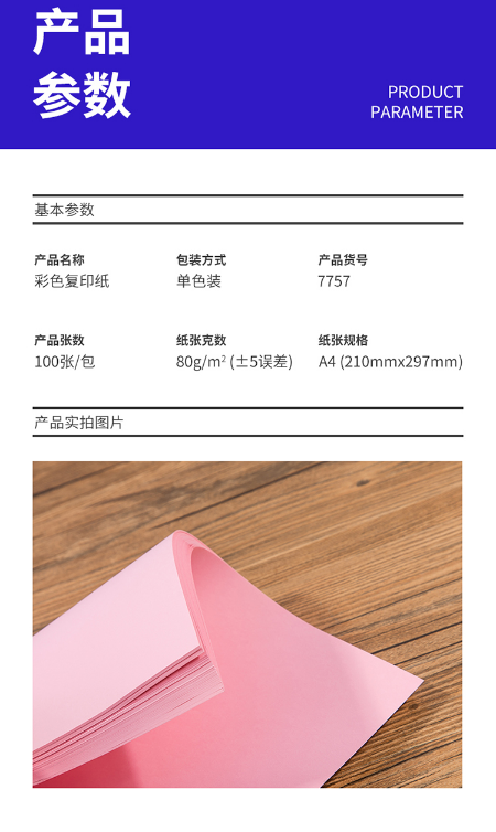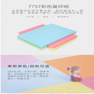 商品名称:得力蓝色彩纸A4/80g 7757 商品编号:101237 品牌:得力 上架时间:2021-06-25 商品毛重:0克