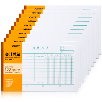 商品名称:得力(deli)22K会计记账凭证 3463 商品编号:101256 品牌:得力 上架时间:2021-06-25 商品毛重:0克