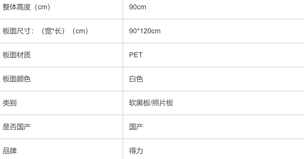 商品名称:得力(deli)90*120cm 软磁铁白板/磁性白板贴/软白板贴/墙贴 不带背胶 (白)8721 商品编号:101668 品牌:得力 上架时间:2021-07-12 商品毛重:0克