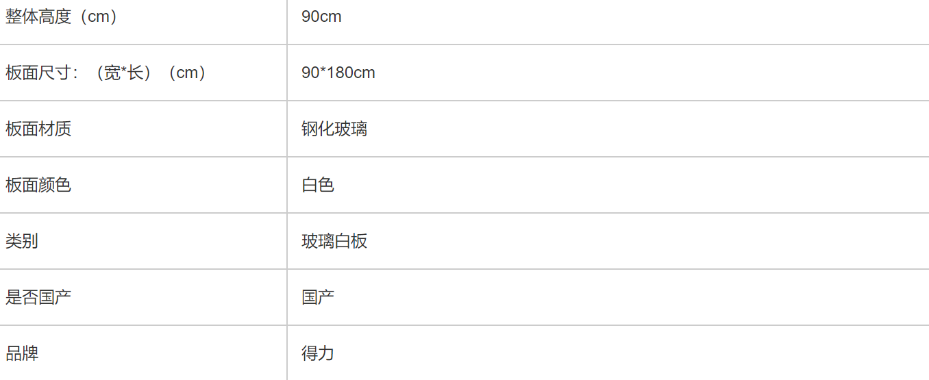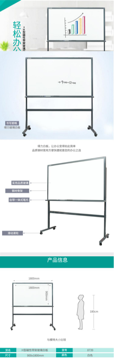 商品名称:得力(deli)支架式白板90*180cm玻璃带架子白板/写字板 8739 商品编号:101679 品牌:得力 上架时间:2021-07-12 商品毛重:0克