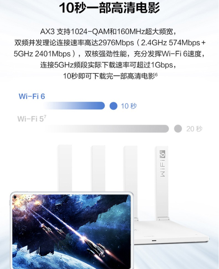 商品名称:华为无线路由器AX3 商品编号:102110 品牌:华为 上架时间:2021-07-23 商品毛重:0克
