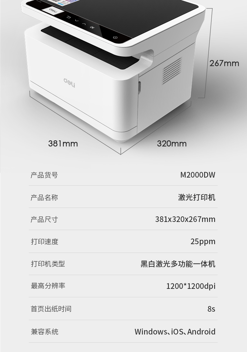 商品名称:得力M2000DW激光打印机双面无线云打印黑白家用办公大容量多功能一体机打印复印扫描三合一 商品编号:182379 品牌:得力 上架时间:2021-08-04 商品毛重:0克