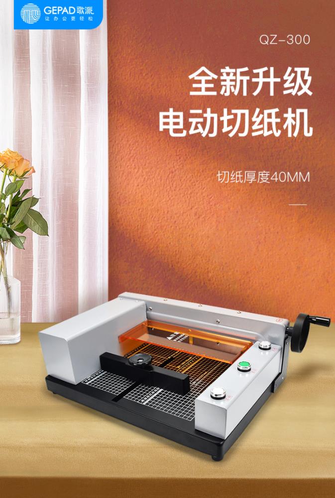 商品名称:歌派(GEPAD)电动数控切纸机 台式桌面切纸刀 文件书籍裁纸机 裁纸刀 QZ-300 商品编号:182456 品牌:歌派 上架时间:2021-08-06 商品毛重:0克