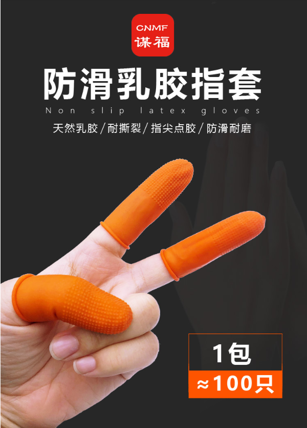 商品名称:谋福 CNMF163乳胶手指套 一次性无尘电子元件车间指套防滑工业防尘 橘色带麻点-中号(100只) 商品编号:182682 品牌:谋福 上架时间:2021-08-17 商品毛重:0克