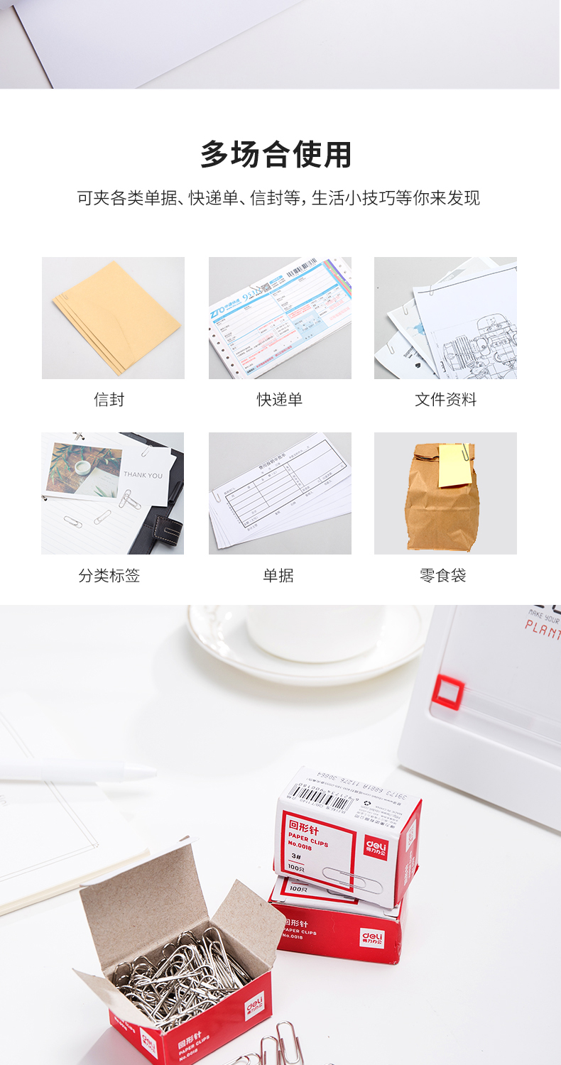 商品名称:得力(deli) 0018 回形针100枚盒 10盒装 商品编号:182850 品牌:得力 上架时间:2021-08-19 商品毛重:0克