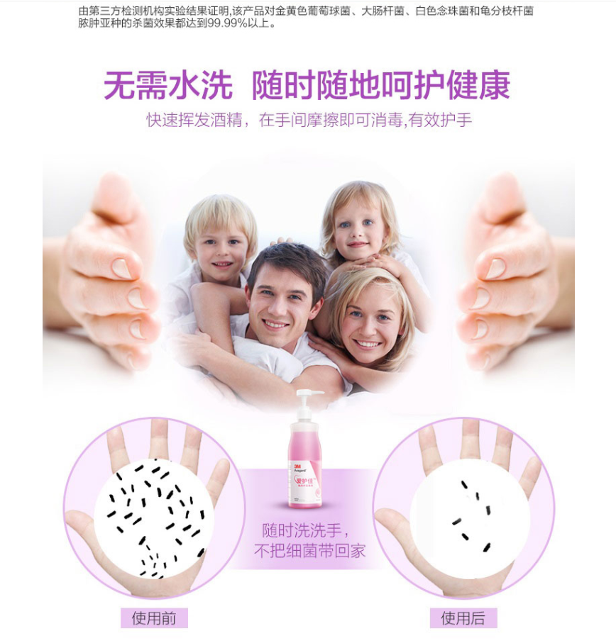 商品名称:3M爱护佳免洗洗手液杀菌消毒液儿童学生洗手液酒精便携家用抑菌 9250P 商品编号:182875 品牌:3M 上架时间:2021-08-20 商品毛重:0克
