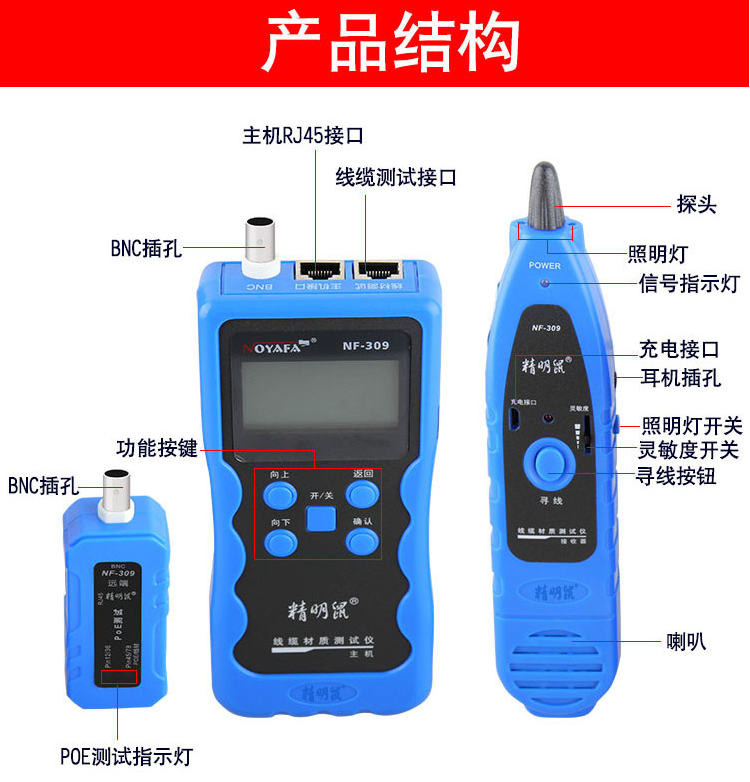 商品名称:精明鼠 NOYAFA NF-309 网线材质测试仪 寻线仪 测线器 新研发线缆材质长度测试 抗干扰测线仪 商品编号:183027 品牌:精明鼠 上架时间:2021-08-25 商品毛重:0克