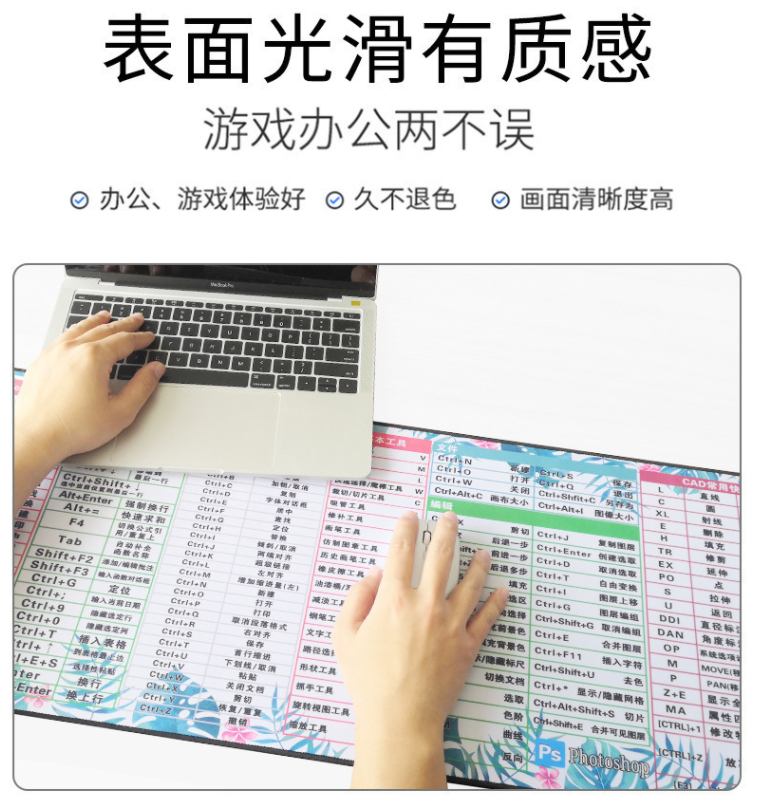 商品名称:玲魅 鼠标垫快捷大全电脑键盘垫笔记本办公游戏锁边大号鼠标垫800*300mm快捷键大全鼠标垫 黑色 商品编号:183115 品牌:玲魅 上架时间:2021-08-27 商品毛重:0克