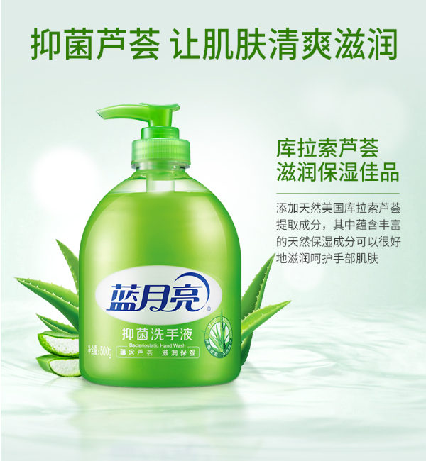 - 商品名称:蓝月亮 芦荟抑菌洗手液500g瓶 清洁抑菌99.9% 滋润保湿 泡沫丰富 易冲洗 抑菌洗手液