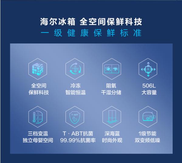 商品名称:海尔(Haier)506升双变频风冷无霜全空间保鲜法式多门冰箱除菌干湿分储三档变温全开抽屉BCD-506WSEBU1 商品编号:183156 品牌:海尔 上架时间:2021-08-27 商品毛重:0克