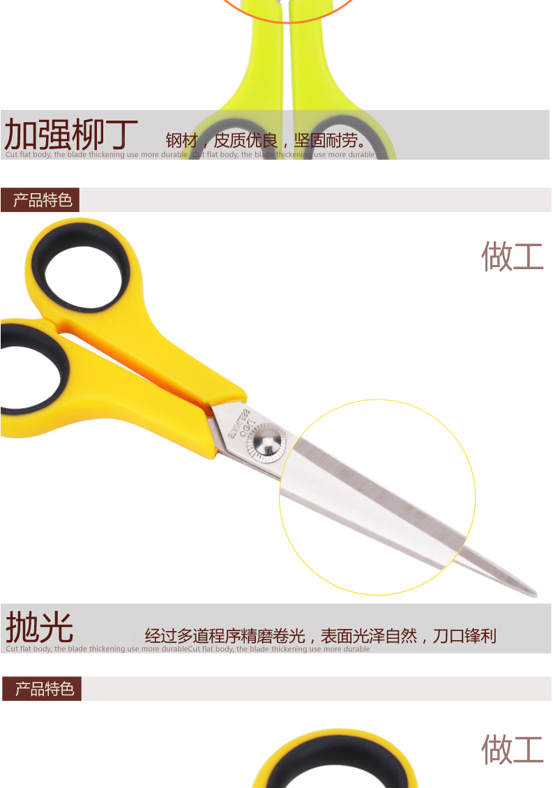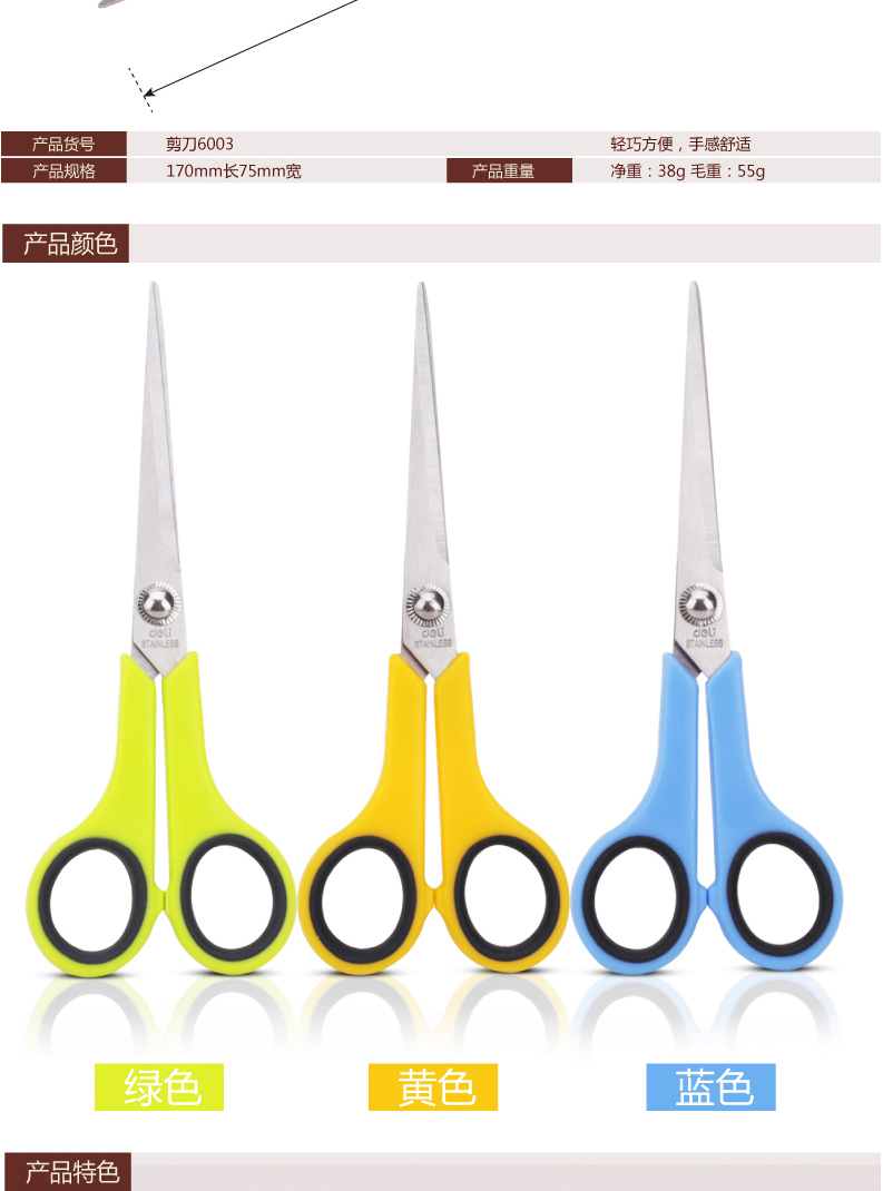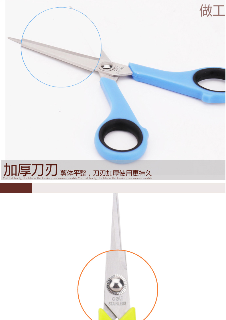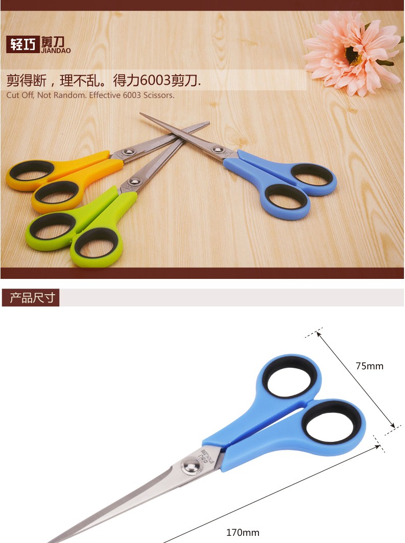 商品名称:得力(deli) 剪刀 家用缝纫剪纸刀 锋利不锈钢剪子办公用品 140mm小号剪刀6005 商品编号:183296 品牌:得力 上架时间:2021-09-01 商品毛重:0克