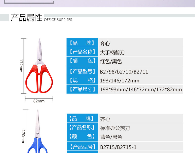 商品名称:齐心剪刀B2712 商品编号:183344 品牌:齐心 上架时间:2021-09-01 商品毛重:0克