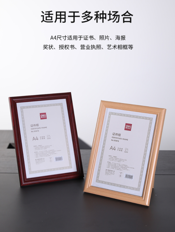 商品名称:得力(deli)A4营业执照相框证件框 工商税务登记证框 横竖证件相框画框证书框文件框 黄色50876 商品编号:183685 品牌:得力 上架时间:2021-09-08 商品毛重:0克