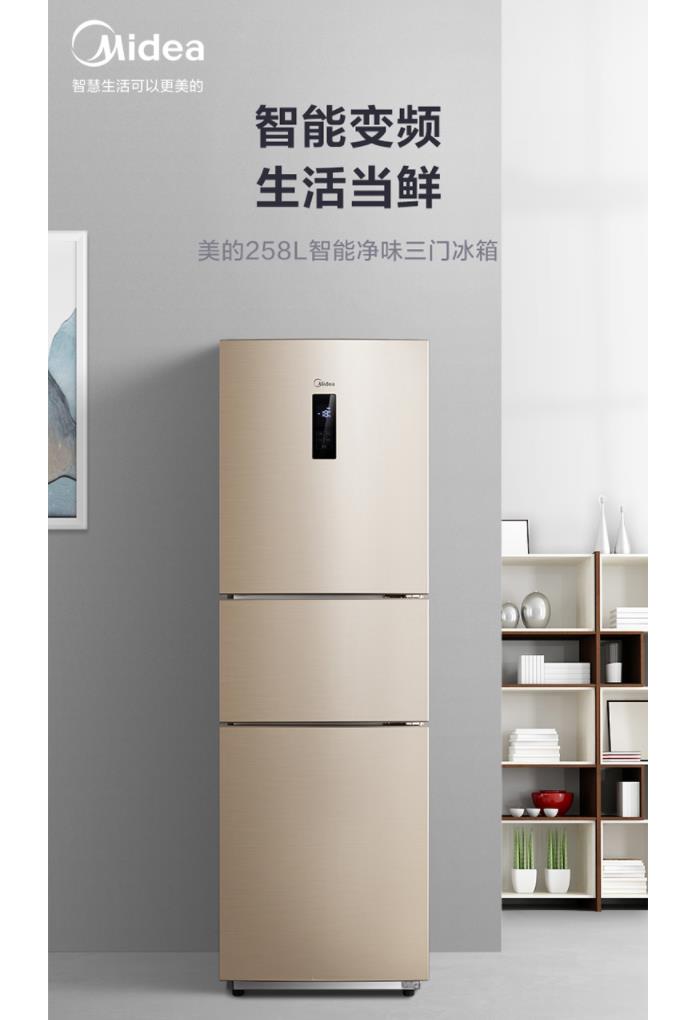 商品名称:美的(Midea)258升变频一级能效三门家用冰箱风冷无霜小冰箱BCD-258WTPZM(E)雷达感温精准控温节能低噪 商品编号:183944 品牌:美的 上架时间:2021-09-11 商品毛重:0克
