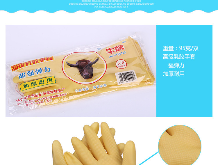 - 商品名称:牛牌橡胶手套 10双装加厚橡胶手套 洗碗手套耐用家务手套防水加长乳胶皮洗衣手套 S/M/L码