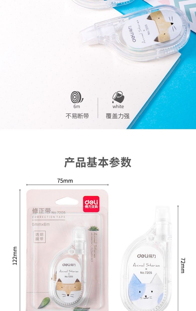 商品名称:得力(deli)7205涂改液修正带加长耐用改正带涂改带6米单个装颜色随机 商品编号:184109 品牌:得力 上架时间:2021-09-14 商品毛重:0克