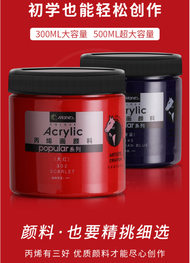马利丙烯颜料300ml大红 大瓶装墙绘手绘彩绘饰品学生丙烯画颜料套装 防水不掉色丙烯套装A-Z300