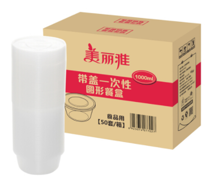 商品名称:美丽雅 带盖一次性圆形快餐盒1000ml*50套 外卖打包饭盒保鲜盒 商品编号:184196 品牌:美丽雅 上架时间:2021-09-15 商品毛重:0克