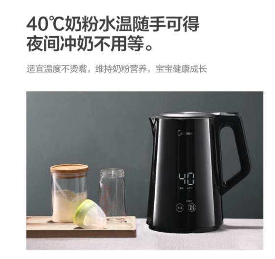 - 商品名称:美的(Midea)电水壶电热水瓶烧水壶开水壶304不锈钢智能控温双温度显示全钢电热水壶MK-SH15Power508b