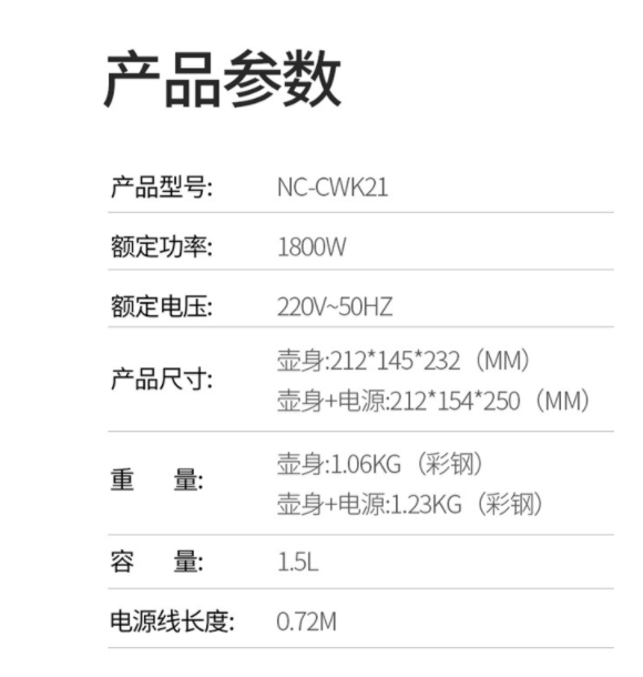商品名称:松下(Panasonic)电水壶热水壶烧水壶开水壶大容量不锈钢内胆 NC-CWK21 黑色 商品编号:184359 品牌:松下 上架时间:2021-09-17 商品毛重:0克