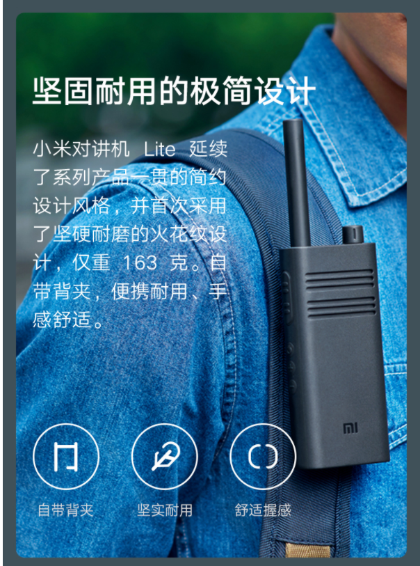 商品名称:小米 MI 小米对讲机Lite 黑色 超轻 超薄 APP写频 超长待机 户外酒店自驾游民用手台 商品编号:184367 品牌:小米 上架时间:2021-09-17 商品毛重:0克
