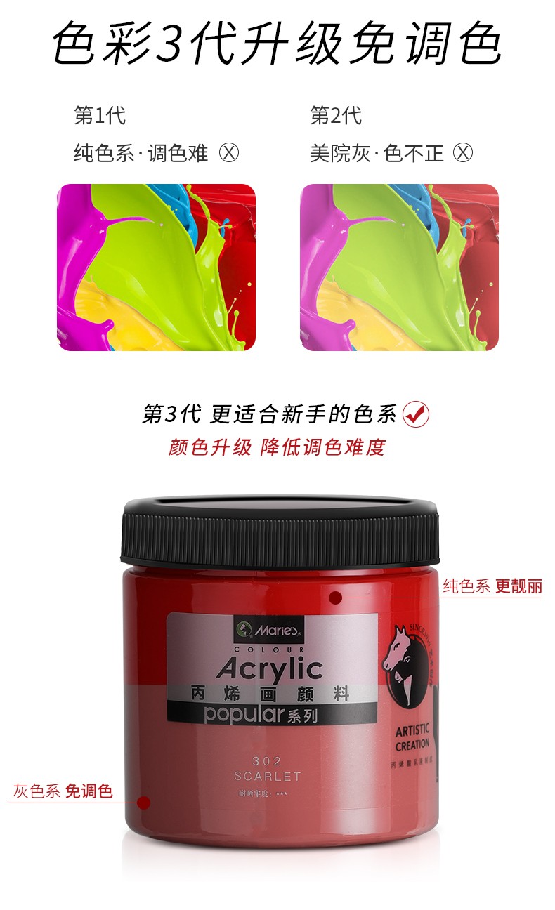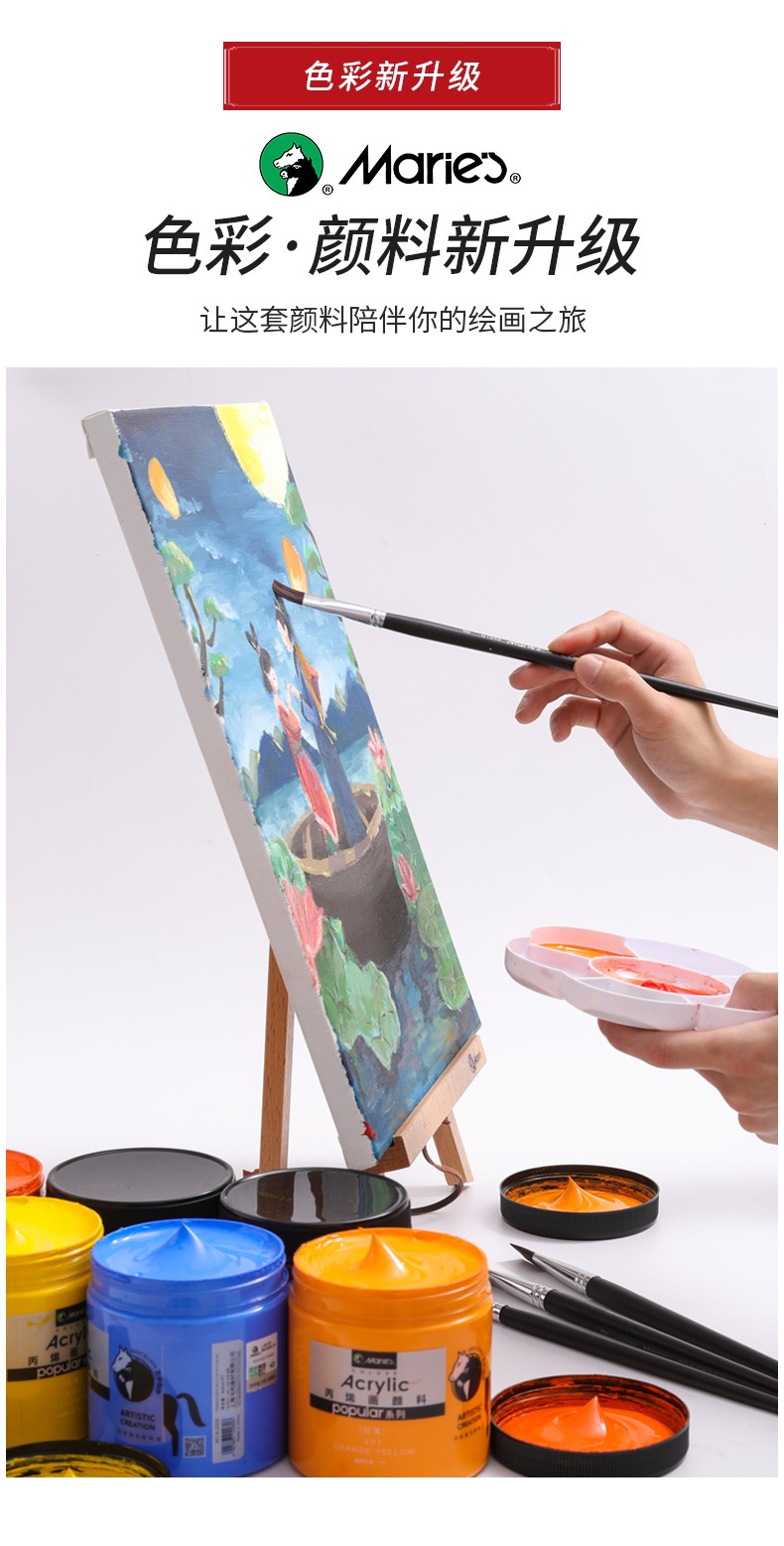 商品名称:马利丙烯颜料300ml湖蓝 大瓶装墙绘手绘彩绘饰品学生丙烯画颜料套装 防水不掉色丙烯套装A-Z300