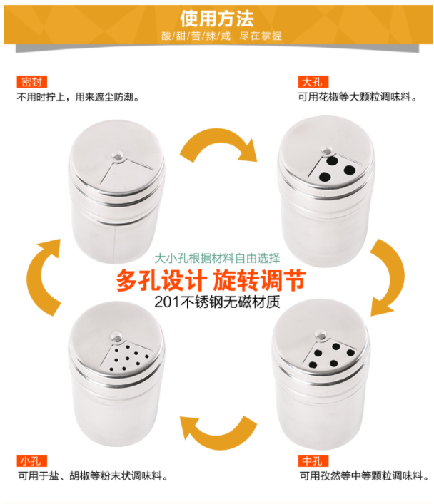 商品名称:尚烤佳 调料罐 调料瓶 不锈钢调味瓶 调味罐 厨房用品 烧烤工具配件 可调节大小孔 3只装 商品编号:184511 品牌:尚烤佳 上架时间:2021-09-22 商品毛重:0克