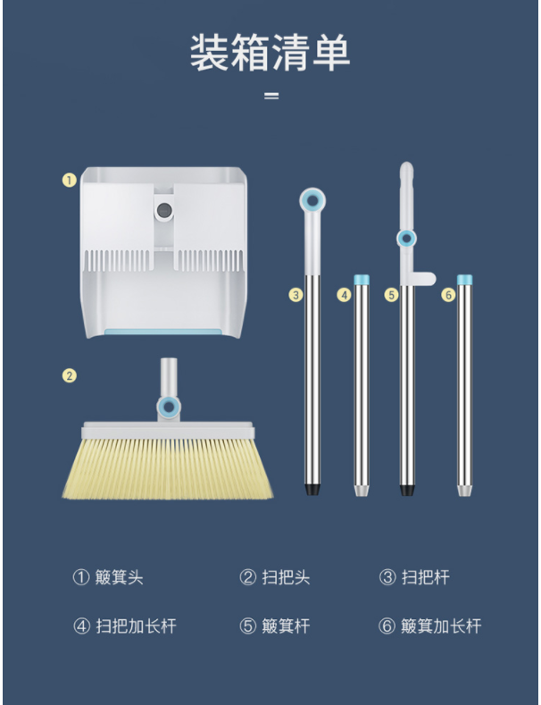 商品名称: 美丽雅 扫把套装扫帚簸箕套装扫地扫帚防风梳齿扫把家用可旋转折叠套扫 商品编号:184696 品牌:美丽雅 上架时间:2021-09-27 商品毛重:0克