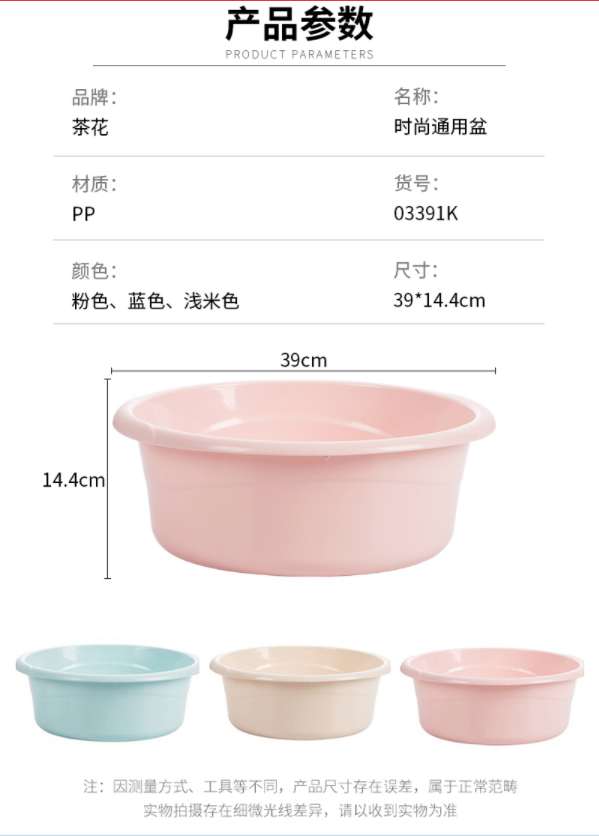 商品名称:茶花 CHAHUA塑料洗脸盆子洗衣盆39CM时尚通用盆 03391K 商品编号:185013 品牌:茶花 上架时间:2021-10-09 商品毛重:0克