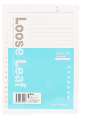 商品名称:晨光(M&G)文具A5/20孔活页本替芯 记事本笔记本子 7mm横线活页纸替换内芯线圈纸 80页/包APY9B045 商品编号:185480 品牌:晨光 上架时间:2021-10-19 商品毛重:0克