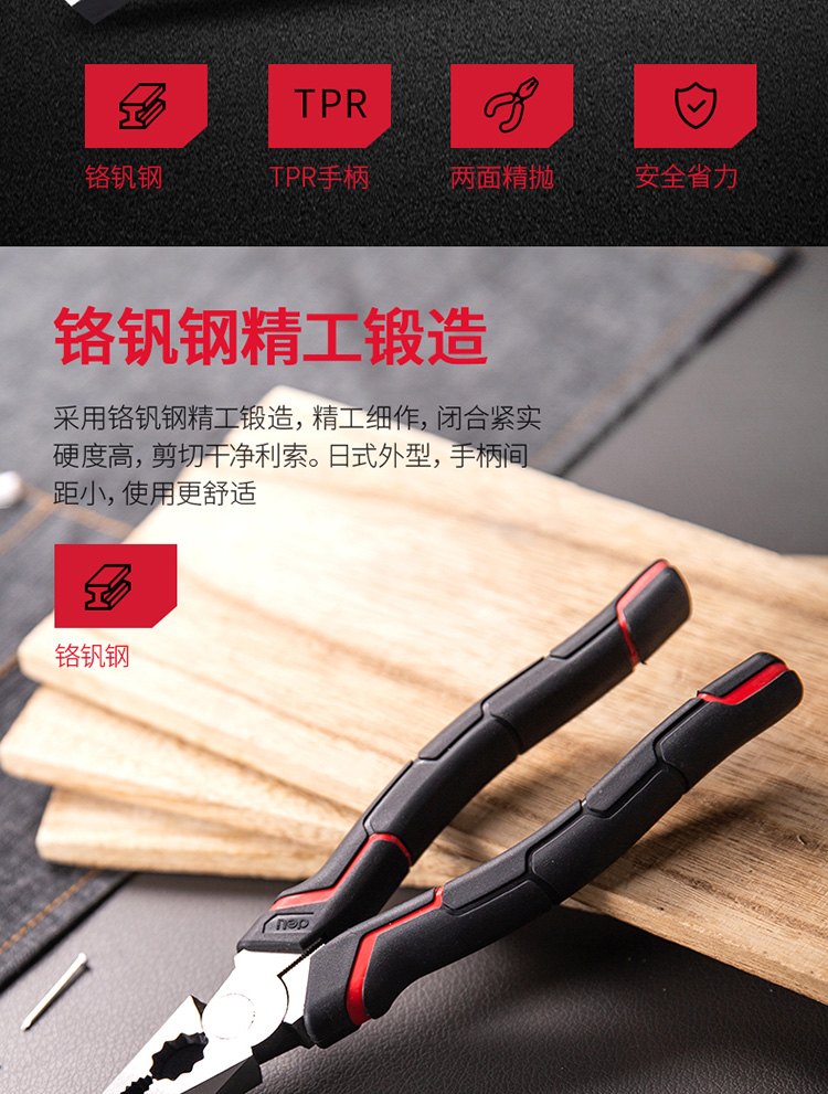 商品名称:得力(deli)日式省力钢丝钳子60号铬钒钢老虎钳子多功能平口钳剪线钳胶把手钳 省力型日式钢丝钳7寸 DL100107 商品编号:185523 品牌:得力 上架时间:2021-10-20 商品毛重:0克