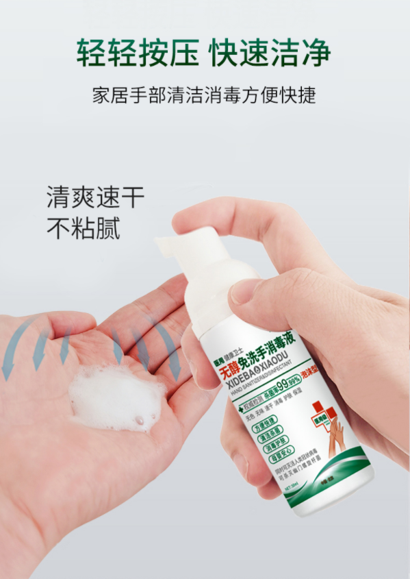 商品名称:洗得宝免洗洗手液消毒杀菌儿童小瓶便携免洗手消毒液泡沫型 无酒精 杀菌99.99% 商品编号:185861 品牌:洗得宝 上架时间:2021-10-27 商品毛重:0克