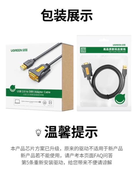 商品名称:绿联(UGREEN)USB转RS232串口线 USB转DB9针公头转接线 支持考勤机收银机标签打印机线com口调试线 3米20223 商品编号:185868 品牌:绿联 上架时间:2021-10-27 商品毛重:0克