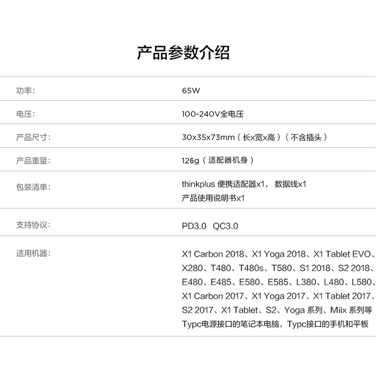 商品名称:ThinkPad type-c口红电源 手机平板笔记本适配器X280T480E480L480S2 T480sE580X390T490-65W黑色 商品编号:186100 品牌:ThinkPad 上架时间:2021-11-01 商品毛重:0克
