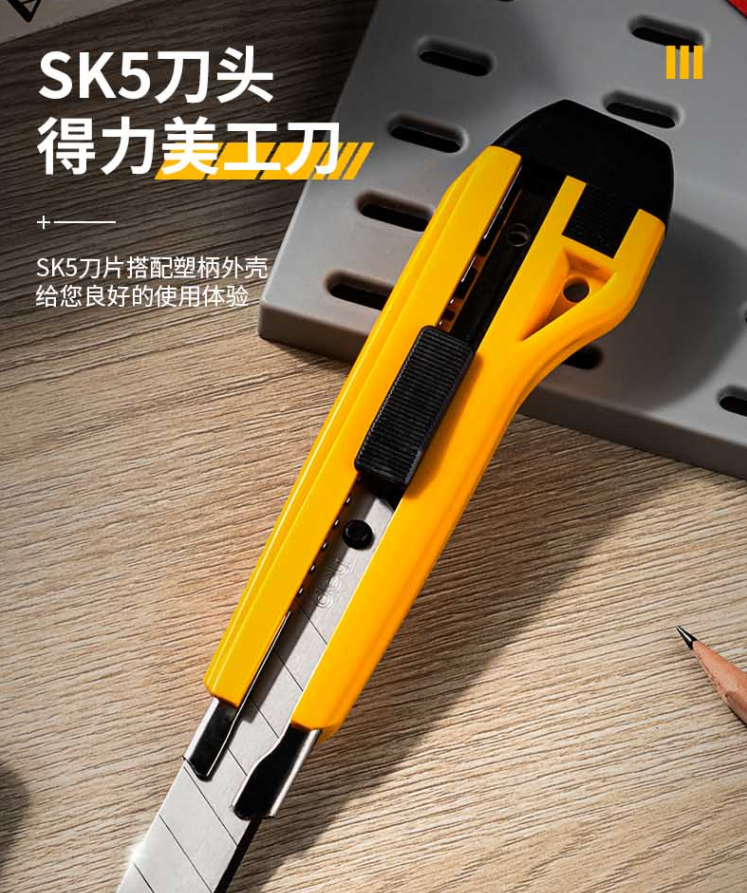 - 商品名称:得力(deli)大号耐用美工刀 手动锁定功能裁纸刀/小刀 2041 黄