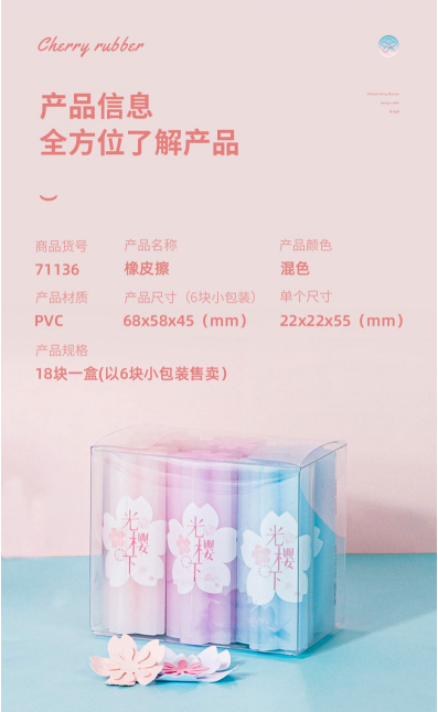 商品名称:得力(deli)学生考试橡皮擦 美术绘图橡皮 半透明小清新浪漫创意夹心 学生文具 居家学习用品 花瓣造型 (6块装)71136 商品编号:186398 品牌:得力 上架时间:2021-11-06 商品毛重:0克
