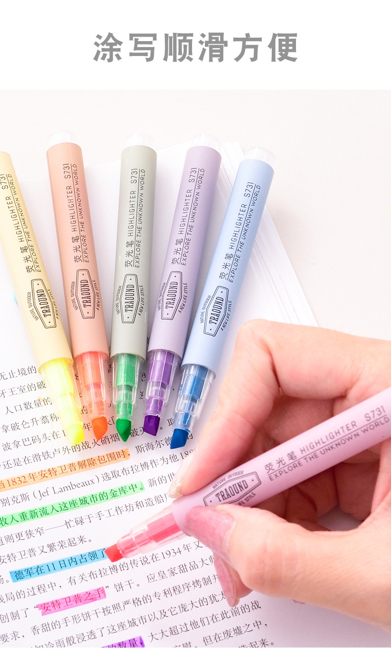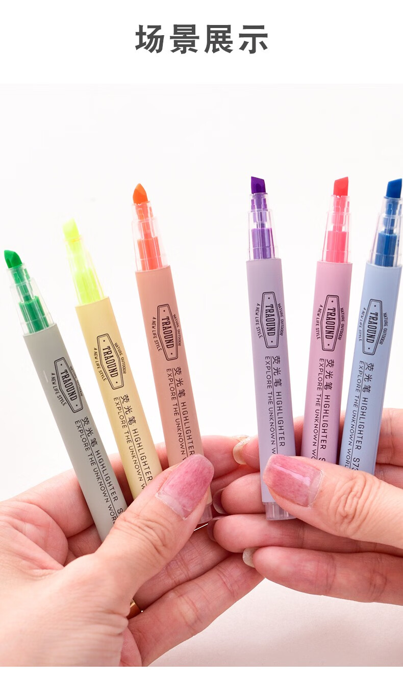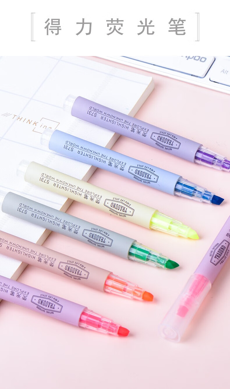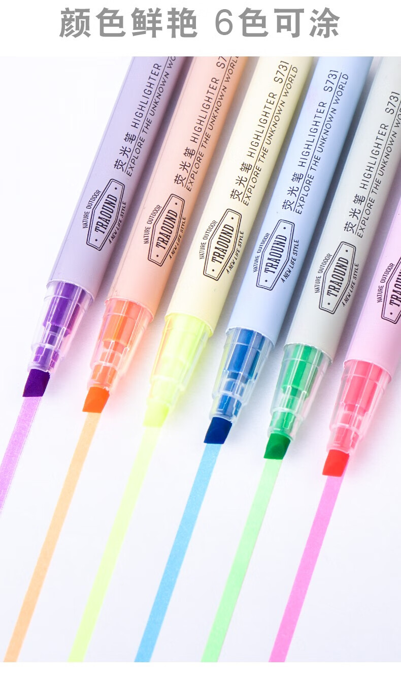 商品名称:得力S731双头荧光笔标记笔学生用糖果色记号笔笔记重点划线笔 蓝色6支装 商品编号:65039422559 品牌:得力 上架时间: 商品毛重:8克
