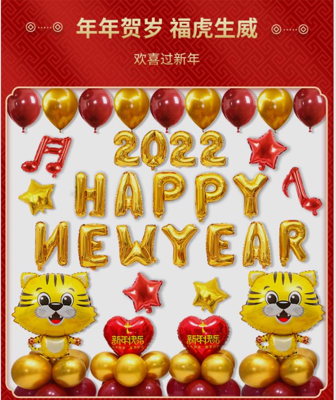 商品名称:演绎 新年装饰气球套餐2022虎年快乐跨年元旦布置公司年会晚会场景商场超市幼儿园教室春节过年装饰品 商品编号:188060 品牌:演绎 上架时间:2021-12-24 商品毛重:0克
